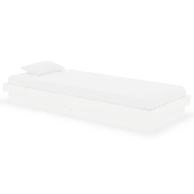 Ta leseni posteljni okvir je popoln za miren spanec. Na praktičen način polepša notranjost vašega doma. Vrhunski material: trdna borovina je čudovit naravni material. Borovina ima ravne vzorce, grče pa dajejo materialu njegov značilen, rustikalen videz.Rustikalni čar: Postelja daje vašemu prostoru rustikalne podtone, ki so lahko resnično sproščujoči. Pomirjujoč učinek tega lesenega posteljnega okvirja spremeni katero koli spalnico ali sobo za goste v pomirjujoč prostor, hkrati pa v prostor doda naravni element.Trdne letvice: Letvice iz vezanega lesa omogočajo dobro porazdelitev teže in zagotavljajo, da vzmetnica ostane na mestu ob vsakem zasuku in obračanju med spanjem. Opomba:Paket vsebuje samo posteljni okvir. Vzmetnica ni priložena. V naši trgovini si lahko ogledate ustrezne vzmetnice.Ta posteljni okvir je primeren za vzmetnico velikosti 75 x 190 cm (2FT6 Small Single).Barva: BelaMaterial: Trdna borovinaCelotne dimenzije: 194 x 78,5 x 21 cm (D x Š x V)Velikost primerne vzmetnice: 75 x 190 cm (Š x D) (2FT6 Small Single) (vzmetnica ni priložena)Potrebno sestavljanje: Da