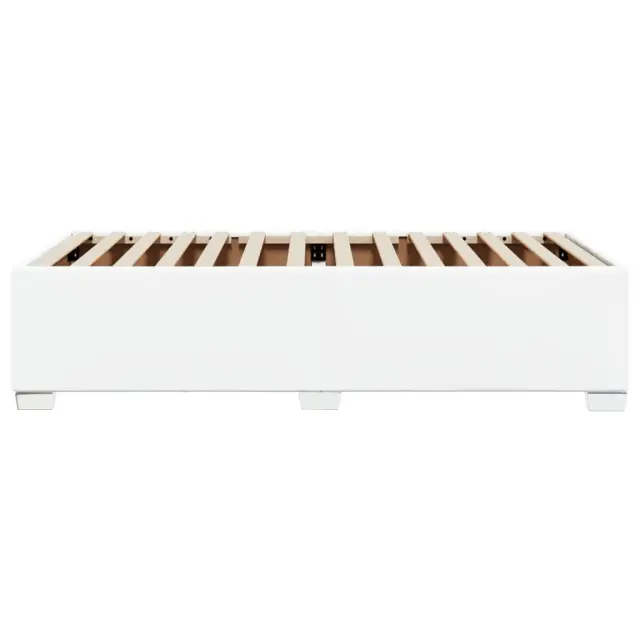 Zagotovite si boljši spanec s tem posteljnim okvirjem! Je prijeten dodatek za vsako spalnico. Dolgotrajno in enostavno vzdrževanje: Umetno usnje je zelo trpežen material, ki je odporen na madeže, zato ga zlahka očistite z vlažno krpo. Njegova gladka površina mu daje eleganten videz, ki spominja na pravo usnje.Letvice za optimalno podporo: Ta posteljni okvir je opremljen z letvicami, ki zagotavljajo osnovno podporo in zračnost vašega ležišča.Stabilne in vzdržljive noge: Ta postelja je podprta z robustnimi nogami, ki zagotavljajo stabilnost, varnost in trdnost. Dobro je vedeti:Vzmetnica ni priložena tej postelji. Ponujamo različno izbiro ležišč. V naši trgovini si lahko ogledate ustrezne vzmetnice.Barva: BelaMaterial: Umetno usnje (75 % polivinilklorid, 5 % bombaž, 20 % poliester), vezan les, konstruiran lesDimenzije: 200 x 100 x 46 cm (D x Š x V)Velikost primerne vzmetnice: 100 x 200 cm (Š x D) (vzmetnica ni priložena)Utrjene plastične nogicePotrebno sestavljanje: Da