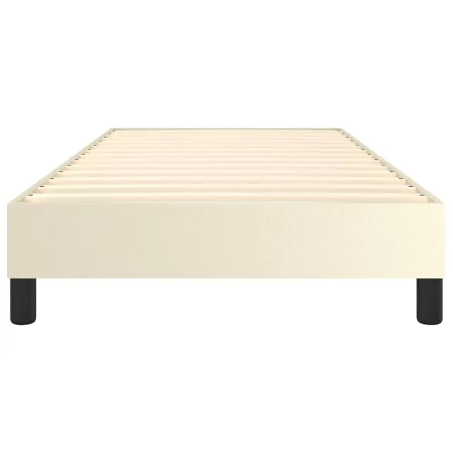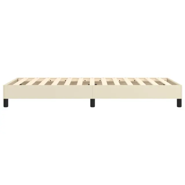 Zagotovite si boljši spanec s tem posteljnim okvirjem! Je prijeten dodatek za vsako spalnico. Trpežno umetno usnje: Vrhunsko umetno usnje je zelo vzdržljiv material. Je odporno na madeže, zato ga lahko preprosto čistite z vlažno krpo. Gladka površina mu prav tako daje razkošen videz in lepoto pravega usnja.Podporne noge: Postelja je podprta s čvrstimi nogami, ki zagotavljajo njeno stabilnost, varnost in trdnost.Letvice iz vezanega lesa: Letvice iz vezanega lesa omogočajo dobro porazdelitev teže in zagotavljajo, da vzmetnica ostane na mestu ob vsakem zasuku in obračanju med spanjem. Dobro je vedeti:Vzmetnica ni priložena tej postelji. Ponujamo različno izbiro ležišč. V naši trgovini si lahko ogledate ustrezne vzmetnice.Barva: KremMaterial: Umetno usnje (75 % polivinilklorid, 5 % bombaž, 20 % poliester), vezan les, konstruiran lesCelotne dimenzije: 203 x 90 x 25 cm (D x Š x V)Velikost primerne vzmetnice: 90 x 200 cm (Š x D) (vzmetnica ni priložena)
