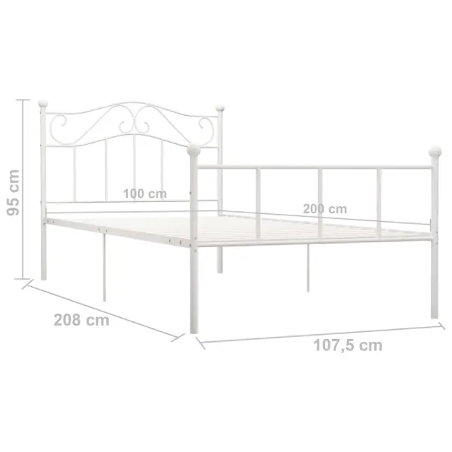 Z našim kovinskim posteljnim okvirjem lahko v svoji spalnici ustvarite elegantno in klasično vzdušje! Posteljni okvir je izdelan iz trdne kovinske konstrukcije. Trdne letve nudijo zadostno podporo in so zelo udobne. Vse te lastnosti vam bodo zagotovo nudile odličen nočni spanec! Posteljni okvir je primeren za vzmetnico velikosti 100 x 200 cm. Upoštevajte, da paket vsebuje samo posteljni okvir s podom iz letvic; vzmetnica ni priložena. Postelja je preprosta za sestavo. V naši trgovini si lahko ogledate primerno vzmetnico.Barva: BelaMaterial: KovinaCelotne dimenzije: 208 x 107,5 x 95 cm (D x Š x V)Spalna višina, merjena od tal: 28 cm Velikost primerne vzmetnice: 100 x 200 cm (Š x D) (vzmetnica ni priložena)Potrebno sestavljanje: Da