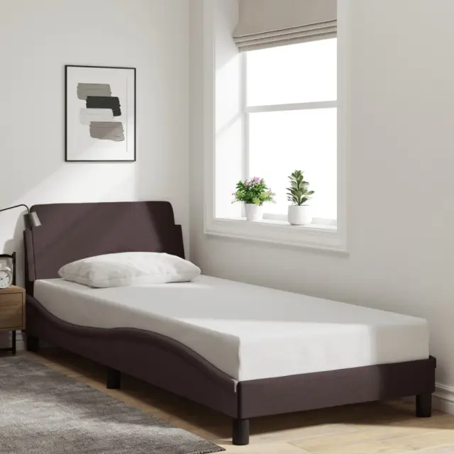 Zagotovite si boljši spanec s tem posteljnim okvirjem z vzglavjem! Je prijeten dodatek za vsako spalnico. Trpežno blago: Blago zagotavlja preprost in čist videz, poleg tega pa je zračno in trpežno.Podporne noge: Postelja je podprta s čvrstimi nogami, ki zagotavljajo njeno stabilnost, varnost in trdnost.Letvice iz vezanega lesa: Letvice iz vezanega lesa omogočajo dobro porazdelitev teže in zagotavljajo, da vzmetnica ostane na mestu ob vsakem zasuku in obračanju med spanjem.Udobna opora: To vzglavje za posteljo vam zagotavlja odlično oporo za hrbet, ko sedite na postelji in berete ali gledate filme.Valovita stranica: Valoviti videz posteljnega okvirja je eleganten in prefinjen. Dekorju v vašem domu dodaja sodoben in eleganten pridih ter tako postane osrednja točka spalnice. Dobro je vedeti:Vzmetnica ni priložena tej postelji. Ponujamo različno izbiro ležišč. V naši trgovini si lahko ogledate ustrezne vzmetnice.Barva: Temno rjavaMaterial: Tkanina (100 % poliester), kovina, vezan les, inženirski lesCelotne dimenzije: 218 x 95 x 74,5 cm (D x Š x V)Velikost primerne vzmetnice: 90 x 200 cm (Š x D) (vzmetnica ni priložena)Potrebno sestavljanje: Da