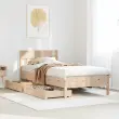Zagotovite si boljši spanec s tem posteljnim okvirjem! Je prijeten dodatek za vsako spalnico. Stabilen in dolgotrajen okvir: Trdna borovina je znana po svoji trdnosti in trajnosti. Ravni vzorci in značilni vozli prispevajo k njenemu rustikalnemu čaru.Podnožje z letvami za optimalno podporo: Za podporo in zračnost ležišča je posteljni okvir opremljen z letvenim dnom.Vsestransko vzglavje: Ta posteljni okvir je opremljen z vzglavjem, ki zagotavlja odlično oporo hrbtu, ko sedite v postelji in berete ali gledate televizijo, hkrati pa služi tudi kot dekorativni element.Popolnoma izkoriščen prostor: Ta posteljni okvir ima spodaj dva predala, ki omogočata shranjevanje predmetov, kot so dodatna posteljnina, sezonska oblačila in igrače.Preprosto manevriranje: Ta predal za shranjevanje pod posteljo ima štiri kolesa, ki zagotavljajo gladko in lahkotno manevriranje pri drsenju pod posteljo in izpod nje. Dobro je vedeti:Vzmetnica ni priložena tej postelji. Ponujamo različno izbiro ležišč. V naši trgovini si lahko ogledate ustrezne vzmetnice.Potrebno sestavljanje: DaPosteljni okvir z vzglavjem:Material: Trdna borovina (neobdelana)Material letvic: Vezan lesDimenzije: 195,5 x 95,5 x 81 cm (D x Š x V)Velikost primerne vzmetnice: 90 x 190 cm (Š x D) (vzmetnica ni priložena)Predal:Material: Trdna borovina (neobdelana)Zunanje dimenzije: 90 x 55 x 16 cm (Š x G x V)Notranje dimenzije: 81,5 x 52,5 x 10 cm (Š x G x V)Maks. nosilnost (vsaka): 20 kgS štirimi kolesiPaket vsebuje:1 x Posteljni okvir z vzglavjem2 x Predal