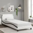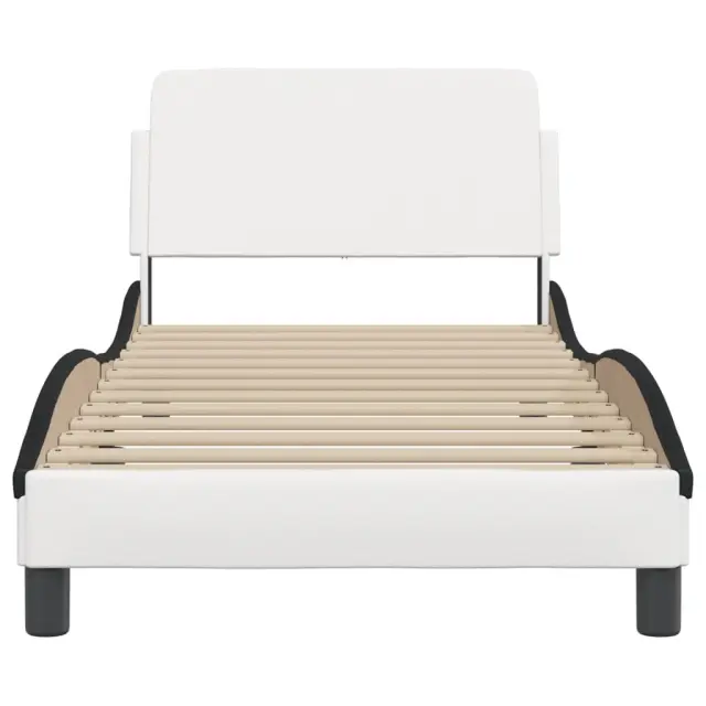 Zagotovite si boljši spanec s tem posteljnim okvirjem z vzglavjem! Je prijeten dodatek za vsako spalnico. Trpežno umetno usnje: Vrhunsko umetno usnje je zelo vzdržljiv material. Je odporno na madeže, zato ga lahko preprosto čistite z vlažno krpo. Gladka površina mu prav tako daje razkošen videz in lepoto pravega usnja.Podporne noge: Postelja je podprta s čvrstimi nogami, ki zagotavljajo njeno stabilnost, varnost in trdnost.Letvice iz vezanega lesa: Letvice iz vezanega lesa omogočajo dobro porazdelitev teže in zagotavljajo, da vzmetnica ostane na mestu ob vsakem zasuku in obračanju med spanjem.Udobna opora: To vzglavje za posteljo vam zagotavlja odlično oporo za hrbet, ko sedite na postelji in berete ali gledate filme.Valovita stranica: Valoviti videz posteljnega okvirja je eleganten in prefinjen. Dekorju v vašem domu dodaja sodoben in eleganten pridih ter tako postane osrednja točka spalnice. Dobro je vedeti:Vzmetnica ni priložena tej postelji. Ponujamo različno izbiro ležišč. V naši trgovini si lahko ogledate ustrezne vzmetnice.Barva: Bela in črnaMaterial: Umetno usnje (75 % polivinilklorid, 5 % bombaž, 20 % poliester), kovina, vezan les, konstruiran lesCelotne dimenzije: 208 x 95 x 74,5 cm (D x Š x V)Velikost primerne vzmetnice: 90 x 190 cm (Š x D) (vzmetnica ni priložena)Potrebno sestavljanje: Da