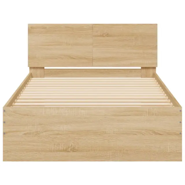 S tem posteljnim okvirjem z vzglavjem in LED lučkami si zagotovite mirnejši spanec! Je prijeten dodatek za vsako spalnico. Vzdržljiv material: Inženirski les se ponaša z izjemno kakovostjo, gladko površino ter močjo, stabilnostjo in odpornostjo na vlago.RGB LED luči: Posteljni okvir je opremljen z živahnimi RGB LED lučkami. Z različnimi prilagodljivimi meniji lahko brez težav spreminjate barvo luči in celo nastavite njihovo samodejno prilagajanje. Te LED lučke ne le poudarjajo sodoben videz posteljnega okvirja, temveč tudi povečujejo njegovo modno privlačnost.Odlična opora: Posteljno vzglavje vam zagotavlja odlično oporo za hrbet, medtem ko sedite v postelji in berete ali gledate televizijo.Trdne letvice: Letvice iz vezanega lesa omogočajo dobro porazdelitev teže in zagotavljajo, da vzmetnica ostane na mestu ob vsakem zasuku in obračanju med spanjem. Dobro je vedeti:Vzmetnica ni priložena tej postelji. Ponujamo različno izbiro ležišč. V naši trgovini si lahko ogledate ustrezne vzmetnice.Izdelek ima priključek USB, ki zahteva certificiran vir napajanja 5 V USB (ni priložen).Barva: Sonoma hrastMaterial posteljnega okvirja: Inženirski lesMaterial letvic: Vezan lesSkupne mere: 203 x 104 x 70 cm (D x Š x V)Velikost primerne vzmetnice: 100 x 200 cm (Š x D) (vzmetnica ni priložena)Potrebno sestavljanje: Da Tega izdelka ne uporabljajte, če je katera koli komponenta polomljena, strgana ali manjka. Ta izdelek se napaja z DC 5 V, vendar certificirani 5 V vir napajanja USB ni priložen. Višja napetost lahko povzroči pregrevanje in poškoduje napravo ter povzroči potencialno nevarnost pregrevanja in požara.