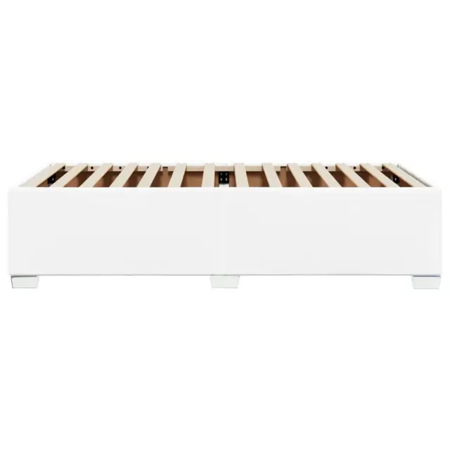 Zagotovite si boljši spanec s tem posteljnim okvirjem! Je prijeten dodatek za vsako spalnico. Dolgotrajno in enostavno vzdrževanje: Umetno usnje je zelo trpežen material, ki je odporen na madeže, zato ga zlahka očistite z vlažno krpo. Njegova gladka površina mu daje eleganten videz, ki spominja na pravo usnje.Letvice za optimalno podporo: Ta posteljni okvir je opremljen z letvicami, ki zagotavljajo osnovno podporo in zračnost vašega ležišča.Stabilne in vzdržljive noge: Ta postelja je podprta z robustnimi nogami, ki zagotavljajo stabilnost, varnost in trdnost. Dobro je vedeti:Vzmetnica ni priložena tej postelji. Ponujamo različno izbiro ležišč. V naši trgovini si lahko ogledate ustrezne vzmetnice.Barva: BelaMaterial: Umetno usnje (75 % polivinilklorid, 5 % bombaž, 20 % poliester), vezan les, konstruiran lesDimenzije: 200 x 80 x 46 cm (D x Š x V)Velikost primerne vzmetnice: 80 x 200 cm (Š x D) (vzmetnica ni priložena)Utrjene plastične nogicePotrebno sestavljanje: Da