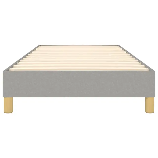 Zagotovite si boljši spanec s tem posteljnim okvirjem! Je prijeten dodatek za vsako spalnico. Trpežno blago: Blago zagotavlja preprost in čist videz, poleg tega pa je zračno in trpežno.Podporne noge: Postelja je podprta s čvrstimi nogami, ki zagotavljajo njeno stabilnost, varnost in trdnost.Letvice iz vezanega lesa: Letvice iz vezanega lesa omogočajo dobro porazdelitev teže in zagotavljajo, da vzmetnica ostane na mestu ob vsakem zasuku in obračanju med spanjem. Dobro je vedeti:Vzmetnica ni priložena tej postelji. Ponujamo različno izbiro ležišč. V naši trgovini si lahko ogledate ustrezne vzmetnice.Barva: Svetlo sivaMaterial: Blago (100 % poliester), vezan les, konstruiran lesCelotne dimenzije: 193 x 90 x 25 cm (D x Š x V)Velikost primerne vzmetnice: 90 x 190 cm (Š x D) (vzmetnica ni priložena)