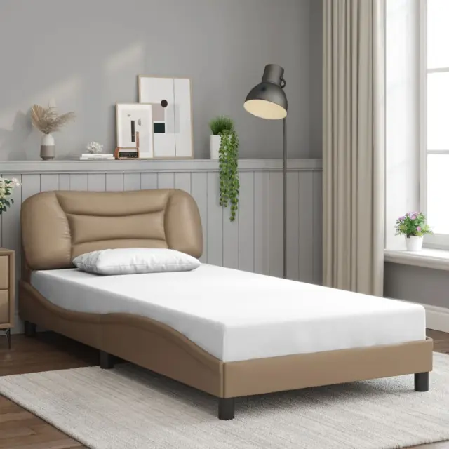 Zagotovite si boljši spanec s tem posteljnim okvirjem z vzglavjem! Je prijeten dodatek za vsako spalnico. Trpežno umetno usnje: Vrhunsko umetno usnje je zelo vzdržljiv material. Je odporno na madeže, zato ga lahko preprosto čistite z vlažno krpo. Gladka površina mu prav tako daje razkošen videz in lepoto pravega usnja.Letvice iz vezanega lesa: Letvice iz vezanega lesa omogočajo dobro porazdelitev teže in zagotavljajo, da vzmetnica ostane na mestu ob vsakem zasuku in obračanju med spanjem.Odlična podpora: Vzglavna stranica je napolnjena s PP vlakni za izjemno mehkobo in optimalno udobje ter zagotavlja odlično podporo hrbtu, ko sedite v postelji in berete ali gledate televizijo.Valovita stranica: Valoviti videz posteljnega okvirja je eleganten in prefinjen. Dekorju v vašem domu dodaja sodoben in eleganten pridih ter tako postane osrednja točka spalnice. Dobro je vedeti:Vzmetnica ni priložena tej postelji. Ponujamo različno izbiro ležišč. V naši trgovini si lahko ogledate ustrezne vzmetnice.Posteljni okvir z vzglavjem:Barva: KapučinoMaterial: Umetno usnje (75 % polivinilklorid, 5 % bombaž, 20 % poliester), kovina, trdna borovina, vezan lesCelotne dimenzije: 218 x 105 x 74,5 cm (D x Š x V)Velikost primerne vzmetnice: 100 x 200 cm (Š x D) (vzmetnica ni priložena)Oblazinjeno vzglavje:Barva: KapučinoMaterial: Umetno usnje (75 % polivinilklorid, 5 % bombaž, 20 % poliester)Material polnila: PP vlaknaDimenzije: 110 x 15 x 48 cm (D x Š x V)Širina primerne vzmetnice: 100 cmPotrebno sestavljanje: DaPaket vsebuje:1 x Posteljni okvir z vzglavjem1 x Oblazinjeno vzglavje