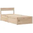 Dodajte svoji spalnici moderen pridih s tem posteljnim okvirjem s predali! Predstavlja praktičen in dekorativen dodatek za vaš bivalni prostor. Stabilen in dolgotrajen okvir: Trdna borovina je znana po svoji trdnosti in trajnosti. Ravni vzorci in značilni vozli prispevajo k njenemu rustikalnemu čaru.Letvice iz vezanega lesa: Letvice iz vezanega lesa omogočajo dobro porazdelitev teže in zagotavljajo, da vzmetnica ostane na mestu ob vsakem zasuku in obračanju med spanjem.Funkcija shranjevanja: Priloženi posteljni predali nudijo dovolj prostora za shranjevanje potrebščin, da bo soba čista in urejena.Vsestransko vzglavje: Ta posteljni okvir je opremljen z vzglavjem, ki zagotavlja odlično oporo hrbtu, ko sedite v postelji in berete ali gledate televizijo, hkrati pa služi tudi kot dekorativni element. Dobro je vedeti:Vzmetnica ni priložena tej postelji. Ponujamo različno izbiro ležišč. V naši trgovini si lahko ogledate ustrezne vzmetnice.Material: Trdna borovina (neobdelana)Material letvic: Vezan lesCelotne dimenzije: 195,5 x 80,5 x 78 cm (D x Š x V)Velikost primerne vzmetnice: 75 x 190 cm (Š x D) (vzmetnica ni priložena)Dimenzije posteljnega predala: 90,5 x 47 x 25,5 cm (D x Š x V)Potrebno sestavljanje: DaPaket vsebuje:1 x Posteljni okvir2 x Posteljni predal