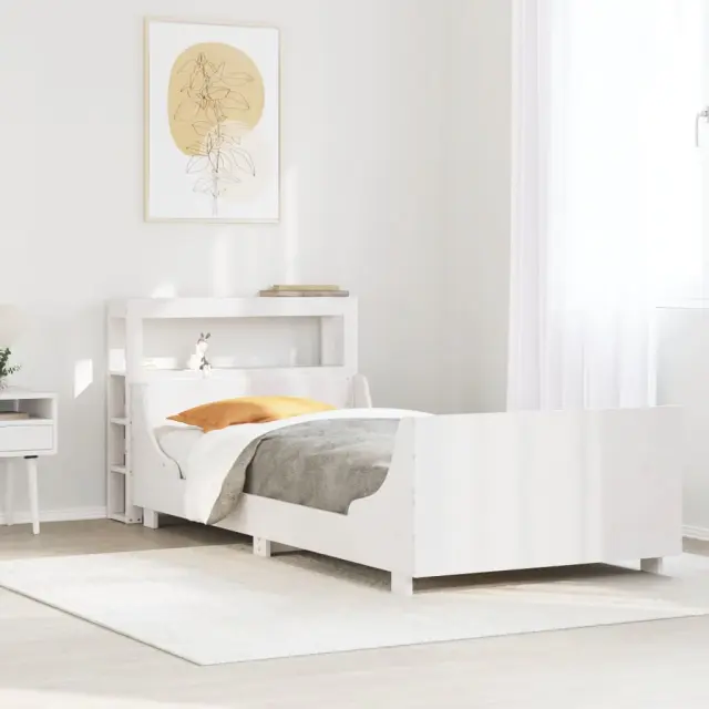Zagotovite si boljši spanec s tem posteljnim okvirjem! Je prijeten dodatek za vsako spalnico. Stabilen in dolgotrajen okvir: Trdna borovina je znana po svoji trdnosti in trajnosti. Ravni vzorci in značilni vozli prispevajo k njenemu rustikalnemu čaru.Podnožje z letvami za optimalno podporo: Za podporo in zračnost ležišča je posteljni okvir opremljen z letvenim dnom.Veliko prostora za shranjevanje: To elegantno posteljno vzglavje ima dve priročni polici, ki ponujata veliko prostora za shranjevanje, da bodo vaše večerne potrebščine na dosegu roke.Samostoječe vzglavje: Samostoječe vzglavje ponuja brezskrbno rešitev za enostavno postavitev in premikanje brez potrebe po vgradnji na steno. Dobro je vedeti:Vzmetnica ni priložena tej postelji. Ponujamo različno izbiro ležišč. V naši trgovini si lahko ogledate ustrezne vzmetnice.Barva: BelaMaterial posteljnega okvirja: Trdna borovinaMaterial letvic: Vezan lesCelotne dimenzije: 222,5 x 96 x 82 cm (D x Š x V)Velikost primerne vzmetnice: 90 x 200 cm (Š x D) (vzmetnica ni priložena)S policami za shranjevanjePotrebno sestavljanje: Da Paket vsebuje:1 x Posteljni okvir1 x Vzglavje
