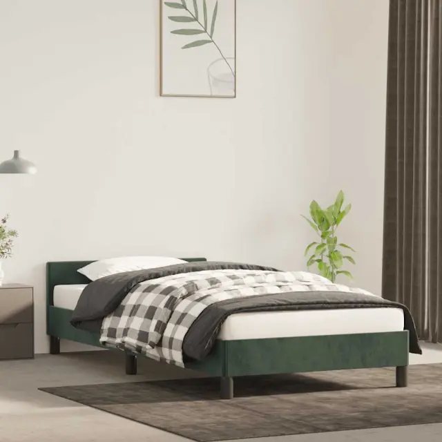Zagotovite si boljši spanec s tem posteljnim okvirjem z vzglavjem! Je prijeten dodatek za vsako spalnico. Mehak žamet: Žamet je mehka in razkošna tkanina, ki jo prepoznamo po gostem kupu enakomerno rezanih gladkih vlaken. Žametna tkanina ima značilen mehak občutek, zaradi česar je prijetna na dotik.Podporne noge: Postelja je podprta s čvrstimi nogami, ki zagotavljajo njeno stabilnost, varnost in trdnost.Letvice iz vezanega lesa: Letvice iz vezanega lesa omogočajo dobro porazdelitev teže in zagotavljajo, da vzmetnica ostane na mestu ob vsakem zasuku in obračanju med spanjem. Opomba:Paket vsebuje samo posteljni okvir. Vzmetnica ni priložena. V naši trgovini si lahko ogledate ustrezne vzmetnice.Vsakemu izdelku je priložen priročnik za enostavno sestavljanje. Dobro je vedeti:Zaradi varčevanja s prostorom so nekateri deli ali blazine zapakirani v notranjost pohištva - preverite, ali so v predalih z zadrgo ali pod prevleko sedeža skriti kakšni sestavni deli.Barva: Temno zelenaMaterial: Žamet (100 % poliester), vezan les, konstruiran lesCelotne dimenzije: 207 x 93 x 50 cm (D x Š x V)Velikost primerne vzmetnice: 90 x 200 cm (Š x D) (vzmetnica ni priložena)