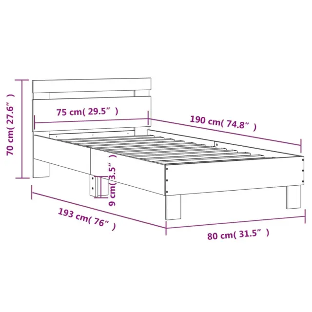Zagotovite si boljši spanec s tem posteljnim okvirjem z vzglavjem! Je prijeten dodatek za vsako spalnico. Vzdržljiv material: Inženirski les se ponaša z izjemno kakovostjo, gladko površino ter močjo, stabilnostjo in odpornostjo na vlago.Odlična opora: Posteljno vzglavje vam zagotavlja odlično oporo za hrbet, medtem ko sedite v postelji in berete ali gledate televizijo.Trdne letvice: Letvice iz vezanega lesa omogočajo dobro porazdelitev teže in zagotavljajo, da vzmetnica ostane na mestu ob vsakem zasuku in obračanju med spanjem. Dobro je vedeti:Vzmetnica ni priložena tej postelji. Ponujamo različno izbiro ležišč. V naši trgovini si lahko ogledate ustrezne vzmetnice.Barva: ČrnaMaterial posteljnega okvirja: Inženirski lesMaterial letvic: Vezan lesCelotne dimenzije: 193 x 80 x 70 cm (D x Š x V)Velikost primerne vzmetnice: 75 x 190 cm (Š x D) (vzmetnica ni priložena)Potrebno sestavljanje: Da