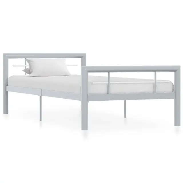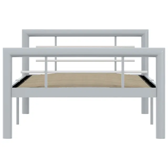 Z našim kovinskim posteljnim okvirjem lahko v svoji spalnici ustvarite elegantno in klasično vzdušje! Posteljni okvir ima trdno konstrukcijo iz kovine. Trdne letve nudijo zadostno podporo in so zelo udobne. Vse te lastnosti vam bodo zagotovo nudile odličen nočni spanec! Posteljni okvir je primeren za vzmetnico velikosti 100 x 200 cm. Sestava je preprosta. Upoštevajte, da paket vsebuje samo posteljni okvir s podom iz letvic. Vzmetnica ni priložena. V naši trgovini si lahko ogledate primerno vzmetnico.Barva: Siva in belaMaterial: KovinaCelotna velikost: 212 x 107,5 x 65,5 cm (D x Š x V)Velikost primerne vzmetnice: 100 x 200 cm (Š x D) (vzmetnica ni priložena)Spalna višina, merjena od tal: 32 cmPriloženo letveno dno: DaPotrebno sestavljanje: Da