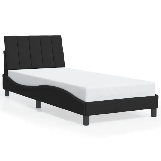 Zagotovite si boljši spanec s tem posteljnim okvirjem z vzglavjem! Je prijeten dodatek za vsako spalnico. Mehak žamet: Žamet je mehka in udobna tkanina, ki je prijetna do kože.Letvice iz vezanega lesa: Letvice iz vezanega lesa omogočajo dobro porazdelitev teže in zagotavljajo, da vzmetnica ostane na mestu ob vsakem zasuku in obračanju med spanjem.Odlična podpora: Vzglavna stranica je napolnjena s peno za izjemno mehkobo in optimalno udobje ter zagotavlja odlično podporo hrbtu, ko sedite v postelji in berete ali gledate televizijo.Priročna zasnova: Vzglavna stranica ima zadrgo za preprosto namestitev, pripenjala na zadnji strani pa se lahko uporabijo za pritrditev LED lučk.Valovita stranica: Valoviti videz posteljnega okvirja je eleganten in prefinjen. Dekorju v vašem domu dodaja sodoben in eleganten pridih ter tako postane osrednja točka spalnice. Dobro je vedeti:Vzmetnica ni priložena tej postelji. Ponujamo različno izbiro ležišč. V naši trgovini si lahko ogledate ustrezne vzmetnice.Posteljni okvir z vzglavjem:Barva: ČrnaMaterial: Žamet (100 % poliester), kovina, trdna borovina, vezan les, inženirski lesCelotne dimenzije: 218 x 95 x 74,5 cm (D x Š x V)Velikost primerne vzmetnice: 90 x 200 cm (Š x D) (vzmetnica ni priložena)Oblazinjeno vzglavje:Barva: ČrnaMaterial: Žamet (100 % poliester)Material polnila: PenaDimenzije: 90 x 3 x 45 cm (D x Š x V)Primerna širina vzmetnice: 90 cmPotrebno sestavljanje: DaPaket vsebuje:1 x Posteljni okvir z vzglavjem1 x Oblazinjeno vzglavje