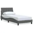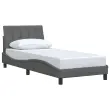 Zagotovite si boljši spanec s tem posteljnim okvirjem! Je prijeten dodatek za vsako spalnico. Mehak in trpežen material: Tkanina iz poliestra ponuja kombinacijo mehkobe, zračnosti in trpežnosti ter vam zagotavlja popolno udobje in prijetnost.Letvice za optimalno podporo: Ta posteljni okvir je opremljen z letvicami, ki zagotavljajo osnovno podporo in zračnost vašega ležišča.Vsestransko vzglavje: Ta posteljni okvir je opremljen z vzglavjem, ki zagotavlja odlično oporo hrbtu, ko sedite v postelji in berete ali gledate televizijo, hkrati pa služi tudi kot dekorativni element.Priročna zasnova: Vzglavna stranica ima zadrgo za preprosto namestitev, pripenjala na zadnji strani pa se lahko uporabijo za pritrditev LED lučk.Valovita stranica: Valoviti videz posteljnega okvirja je eleganten in prefinjen. Dekorju v vašem domu dodaja sodoben in eleganten pridih ter tako postane osrednja točka spalnice. Dobro je vedeti:Vzmetnica ni priložena tej postelji. Ponujamo različno izbiro ležišč. V naši trgovini si lahko ogledate ustrezne vzmetnice.Posteljni okvir:Barva: Temno sivaMaterial: Tkanina (100 % poliester), kovina, vezan les, inženirski lesCelotne dimenzije: 208 x 95 x 74,5 cm (D x Š x V)Velikost primerne vzmetnice: 90 x 190 cm (Š x D) (vzmetnica ni priložena)Oblazinjeno vzglavje:Barva: Temno sivaMaterial: Blago (100 % poliester)Material polnila: PP vlaknaDimenzije: 90 x 3 x 45 cm (D x Š x V)Paket vsebuje:1 x Posteljni okvir1 x Oblazinjeno vzglavje