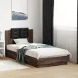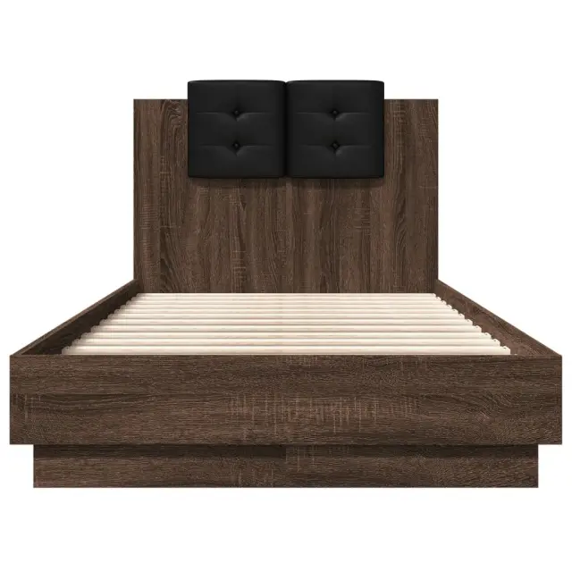 Zagotovite si boljši spanec s tem posteljnim okvirjem z vzglavjem! Je prijeten dodatek za vsako spalnico. Vzdržljiv material: Inženirski les se ponaša z izjemno kakovostjo, gladko površino ter močjo, stabilnostjo in odpornostjo na vlago.Letvice iz vezanega lesa: Letvice iz vezanega lesa omogočajo dobro porazdelitev teže in zagotavljajo, da vzmetnica ostane na mestu ob vsakem zasuku in obračanju med spanjem.Odlična podpora: Vzglavna stranica je napolnjena s peno za izjemno mehkobo in optimalno udobje ter zagotavlja odlično podporo hrbtu, ko sedite v postelji in berete ali gledate televizijo. Dobro je vedeti:Vzmetnica ni priložena tej postelji. Ponujamo različno izbiro ležišč. V naši trgovini si lahko ogledate ustrezne vzmetnice.Barva postelje: Rjav hrastBarva blazine za vzglavje: ČrnaMaterial posteljnega okvirja: Inženirski les, umetno usnje (60 % poliuretan, 30 % poliester, 10 % bombaž)Material letvic: Vezan lesMaterial polnila blazine za vzglavje: PenaCelotne dimenzije: 194,5 x 78 x 84 cm (D x Š x V)Velikost primerne vzmetnice: 75 x 190 cm (Š x D) (vzmetnica ni priložena)Velikost blazine za vzglavje: 32 x 32 cm (D x Š)Potrebno sestavljanje: Da
