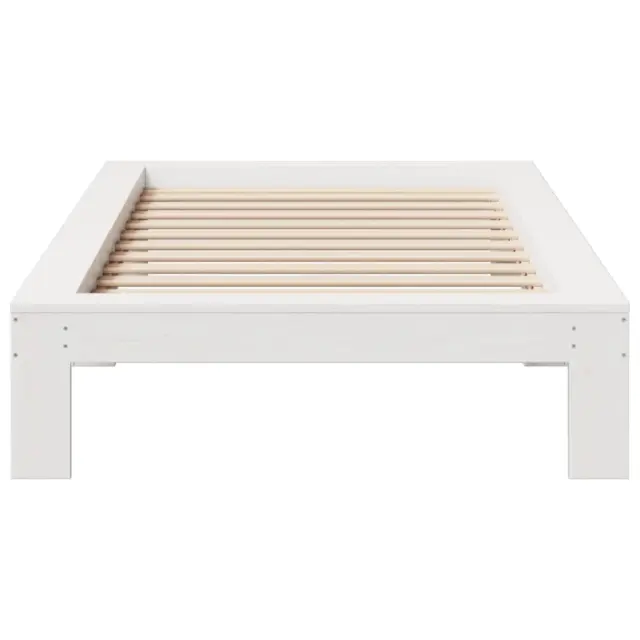 Zagotovite si boljši spanec s tem posteljnim okvirjem! Je prijeten dodatek za vsako spalnico. Stabilen in dolgotrajen okvir: Trdna borovina je znana po svoji trdnosti in trajnosti. Ravni vzorci in značilni vozli prispevajo k njenemu rustikalnemu čaru.Podnožje z letvami za optimalno podporo: Za podporo in zračnost ležišča je posteljni okvir opremljen z letvenim dnom.Dodaten prostor za shranjevanje: Za večje udobje je pod leseno posteljo dodaten prostor, v katerem lahko shranite škatle za shranjevanje, da bodo lepo skrite.Stabilne in vzdržljive noge: Ta postelja je podprta z robustnimi nogami, ki zagotavljajo stabilnost, varnost in trdnost. Dobro je vedeti:Vzmetnica ni priložena tej postelji. Ponujamo različno izbiro ležišč. V naši trgovini si lahko ogledate ustrezne vzmetnice.Barva: BelaMaterial: Trdna borovinaMaterial letvic: Vezan lesDimenzije: 211,5 x 96,5 x 32 cm (D x Š x V)Velikost primerne vzmetnice: 75 x 190 cm (Š x D) (vzmetnica ni priložena)Potrebno sestavljanje: Da