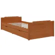 Ta posteljni okvir je praktičen in dekorativen dodatek za vašo spalnico. Vrhunski material: trdna borovina je čudovit naravni material. Borovina ima ravne vzorce, grče pa dajejo materialu njegov značilen, rustikalen videz.Močne letvice: Močne letvice ponujajo potrebno podporo in udobje. Na tej postelji lahko vsako noč uživate v odličnem spancu!Funkcija shranjevanja: Priloženi posteljni predali nudijo dovolj prostora za shranjevanje potrebščin, da bo soba čista in urejena. Opomba:Paket vsebuje samo posteljni okvir. Vzmetnica ni priložena. V naši trgovini si lahko ogledate ustrezne vzmetnice.Barva: Medeno rjavaMaterial: Trdna borovinaCelotne dimenzije: 203,5 x 96 x 48,5 cm (D x Š x V)Velikost predala: 95 x 63 x 20 cm (Š x G x V)Velikost primerne vzmetnice: 90 x 200 cm (Š x D) (vzmetnica ni priložena)Potrebno sestavljanje: Da