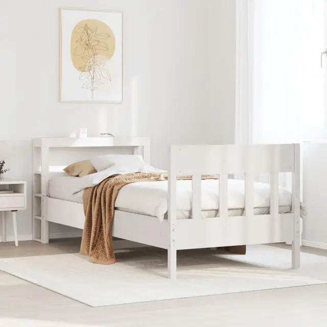 Posteljni okvir - Enojna postelja - Postelja za odrasle brez vzmetnice bel 75x190 cm trdna borovina-J11609