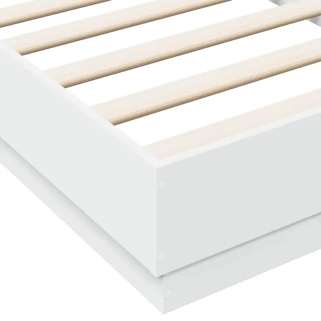 Zagotovite si boljši spanec s tem posteljnim okvirjem z LED lučkami! Je prijeten dodatek za vsako spalnico. Vzdržljiv material: Inženirski les se ponaša z izjemno kakovostjo, gladko površino ter močjo, stabilnostjo in odpornostjo na vlago.RGB LED luči: Posteljni okvir je opremljen z živahnimi RGB LED lučkami. Z različnimi prilagodljivimi meniji lahko brez težav spreminjate barvo luči in celo nastavite njihovo samodejno prilagajanje. Te LED lučke poudarjajo sodoben videz posteljnega okvirja in povečujejo njegovo modno privlačnost.Trdne letvice: Letvice iz vezanega lesa omogočajo dobro porazdelitev teže in zagotavljajo, da vzmetnica ostane na mestu ob vsakem zasuku in obračanju med spanjem. Dobro je vedeti:Vzmetnica ni priložena tej postelji. Ponujamo različno izbiro ležišč. V naši trgovini si lahko ogledate ustrezne vzmetnice.Izdelek ima priključek USB, ki zahteva certificiran vir napajanja 5 V USB (ni priložen).Barva: BelaMaterial posteljnega okvirja: Inženirski lesMaterial letvic: Vezan lesCelotne dimenzije: 193 x 78 x 23 cm (D x Š x V)Velikost primerne vzmetnice: 75 x 190 cm (Š x D) (vzmetnica ni priložena)Potrebno sestavljanje: Da Tega izdelka ne uporabljajte, če je katera koli komponenta polomljena, strgana ali manjka. Ta izdelek se napaja z DC 5 V, vendar certificirani 5 V vir napajanja USB ni priložen. Višja napetost lahko povzroči pregrevanje in poškoduje napravo ter povzroči potencialno nevarnost pregrevanja in požara.