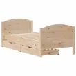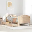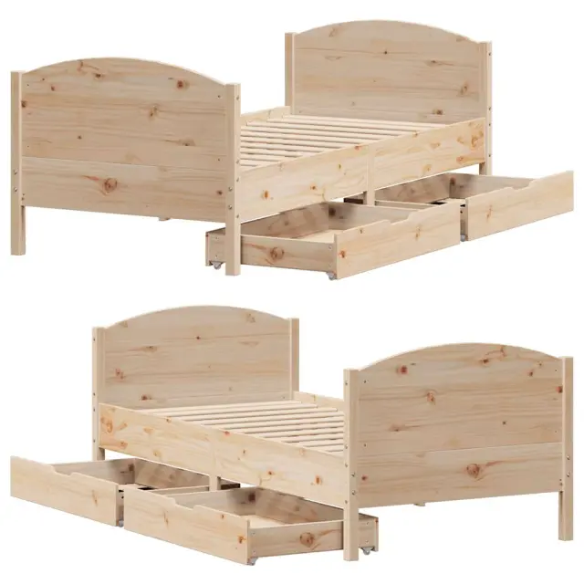 Zagotovite si boljši spanec s tem posteljnim okvirjem! Je prijeten dodatek za vsako spalnico. Stabilen in dolgotrajen okvir: Trdna borovina je znana po svoji trdnosti in trajnosti. Ravni vzorci in značilni vozli prispevajo k njenemu rustikalnemu čaru.Podnožje z letvami za optimalno podporo: Za podporo in zračnost ležišča je posteljni okvir opremljen z letvenim dnom.Vsestransko vzglavje: Ta posteljni okvir je opremljen z vzglavjem, ki zagotavlja odlično oporo hrbtu, ko sedite v postelji in berete ali gledate televizijo, hkrati pa služi tudi kot dekorativni element.Popolnoma izkoriščen prostor: Ta posteljni okvir ima spodaj dva predala, ki omogočata shranjevanje predmetov, kot so dodatna posteljnina, sezonska oblačila in igrače.Preprosto manevriranje: Ta predal za shranjevanje pod posteljo ima štiri kolesa, ki zagotavljajo gladko in lahkotno manevriranje pri drsenju pod posteljo in izpod nje. Dobro je vedeti:Vzmetnica ni priložena tej postelji. Ponujamo različno izbiro ležišč. V naši trgovini si lahko ogledate ustrezne vzmetnice.Potrebno sestavljanje: DaPosteljni okvir:Material: Trdna borovina (neobdelana)Material letvic: Vezan lesDimenzije: 195,5 x 80,5 x 74,5 cm (D x Š x V)Velikost primerne vzmetnice: 75 x 190 cm (Š x D) (vzmetnica ni priložena)Predal:Material: Trdna borovina (neobdelana)Zunanje dimenzije: 90 x 55 x 16 cm (Š x G x V)Notranje dimenzije: 81,5 x 52,5 x 10 cm (Š x G x V)Maks. nosilnost (vsaka): 20 kgS štirimi kolesiPaket vsebuje:1 x Posteljni okvir2 x Predal