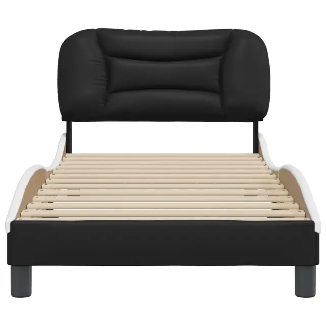 Zagotovite si boljši spanec s tem posteljnim okvirjem z vzglavjem! Je prijeten dodatek za vsako spalnico. Trpežno umetno usnje: Vrhunsko umetno usnje je zelo vzdržljiv material. Je odporno na madeže, zato ga lahko preprosto čistite z vlažno krpo. Gladka površina mu prav tako daje razkošen videz in lepoto pravega usnja.Letvice iz vezanega lesa: Letvice iz vezanega lesa omogočajo dobro porazdelitev teže in zagotavljajo, da vzmetnica ostane na mestu ob vsakem zasuku in obračanju med spanjem.Odlična podpora: Vzglavna stranica je napolnjena s PP vlakni za izjemno mehkobo in optimalno udobje ter zagotavlja odlično podporo hrbtu, ko sedite v postelji in berete ali gledate televizijo.Valovita stranica: Valoviti videz posteljnega okvirja je eleganten in prefinjen. Dekorju v vašem domu dodaja sodoben in eleganten pridih ter tako postane osrednja točka spalnice. Dobro je vedeti:Vzmetnica ni priložena tej postelji. Ponujamo različno izbiro ležišč. V naši trgovini si lahko ogledate ustrezne vzmetnice.Posteljni okvir z vzglavjem:Barva: Črna in belaMaterial: Umetno usnje (75 % polivinilklorid, 5 % bombaž, 20 % poliester), kovina, trdna borovina, vezan lesCelotne dimenzije: 218 x 95 x 74,5 cm (D x Š x V)Velikost primerne vzmetnice: 90 x 200 cm (Š x D) (vzmetnica ni priložena)Oblazinjeno vzglavje:Barva: ČrnaMaterial: Umetno usnje (75 % polivinilklorid, 5 % bombaž, 20 % poliester)Material polnila: PP vlaknaDimenzije: 100 x 15 x 48 cm (D x Š x V)Primerna širina vzmetnice: 90 cmPotrebno sestavljanje: DaPaket vsebuje:1 x Posteljni okvir z vzglavjem1 x Oblazinjeno vzglavje