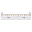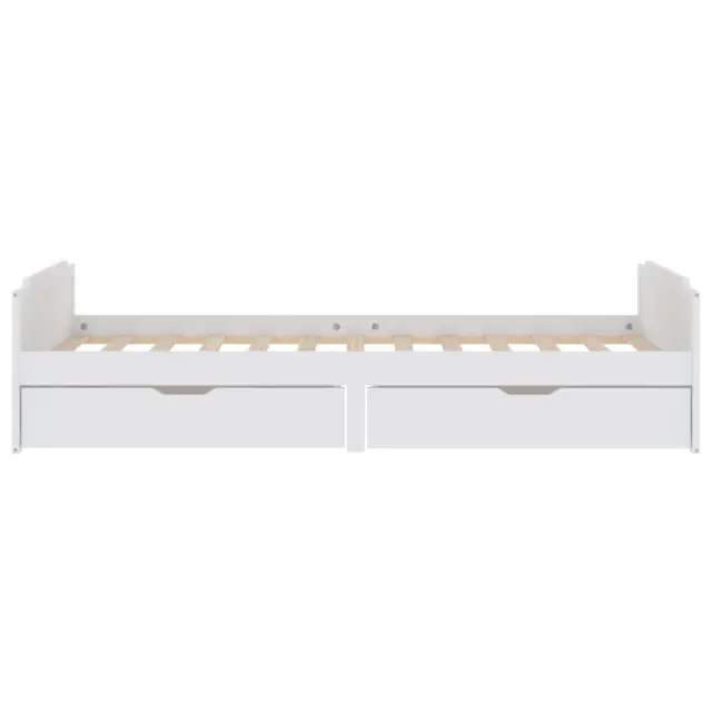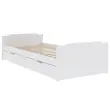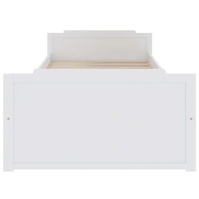 Ta posteljni okvir je praktičen in dekorativen dodatek za vašo spalnico. Vrhunski material: trdna borovina je čudovit naravni material. Borovina ima ravne vzorce, grče pa dajejo materialu njegov značilen, rustikalen videz.Močne letvice: Močne letvice ponujajo potrebno podporo in udobje. Na tej postelji lahko vsako noč uživate v odličnem spancu!Funkcija shranjevanja: Priloženi posteljni predali nudijo dovolj prostora za shranjevanje potrebščin, da bo soba čista in urejena. Opomba:Paket vsebuje samo posteljni okvir. Vzmetnica ni priložena. V naši trgovini si lahko ogledate ustrezne vzmetnice.Barva: BelaMaterial: Trdna borovinaCelotne dimenzije: 203,5 x 96 x 48,5 cm (D x Š x V)Velikost predala: 95 x 63 x 20 cm (Š x G x V)Velikost primerne vzmetnice: 90 x 200 cm (Š x D) (vzmetnica ni priložena)Potrebno sestavljanje: Da