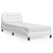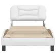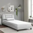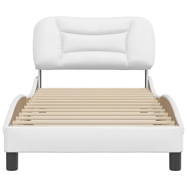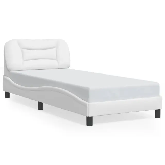 Zagotovite si boljši spanec s tem posteljnim okvirjem z vzglavjem! Je prijeten dodatek za vsako spalnico. Trpežno umetno usnje: Vrhunsko umetno usnje je zelo vzdržljiv material. Je odporno na madeže, zato ga lahko preprosto čistite z vlažno krpo. Gladka površina mu prav tako daje razkošen videz in lepoto pravega usnja.Letvice iz vezanega lesa: Letvice iz vezanega lesa omogočajo dobro porazdelitev teže in zagotavljajo, da vzmetnica ostane na mestu ob vsakem zasuku in obračanju med spanjem.Odlična podpora: Vzglavna stranica je napolnjena s PP vlakni za izjemno mehkobo in optimalno udobje ter zagotavlja odlično podporo hrbtu, ko sedite v postelji in berete ali gledate televizijo.Valovita stranica: Valoviti videz posteljnega okvirja je eleganten in prefinjen. Dekorju v vašem domu dodaja sodoben in eleganten pridih ter tako postane osrednja točka spalnice. Dobro je vedeti:Vzmetnica ni priložena tej postelji. Ponujamo različno izbiro ležišč. V naši trgovini si lahko ogledate ustrezne vzmetnice.Posteljni okvir z vzglavjem:Barva: BelaMaterial: Umetno usnje (75 % polivinilklorid, 5 % bombaž, 20 % poliester), kovina, trdna borovina, vezan lesCelotne dimenzije: 218 x 95 x 74,5 cm (D x Š x V)Velikost primerne vzmetnice: 90 x 200 cm (Š x D) (vzmetnica ni priložena)Oblazinjeno vzglavje:Barva: BelaMaterial: Umetno usnje (75 % polivinilklorid, 5 % bombaž, 20 % poliester)Material polnila: PP vlaknaDimenzije: 100 x 15 x 48 cm (D x Š x V)Primerna širina vzmetnice: 90 cmPotrebno sestavljanje: DaPaket vsebuje:1 x Posteljni okvir z vzglavjem1 x Oblazinjeno vzglavje
