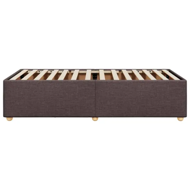 Zagotovite si boljši spanec s tem posteljnim okvirjem! Je prijeten dodatek za vsako spalnico. Mehak in trpežen material: Tkanina iz poliestra združuje mehkobo, zračnost in trpežnost ter vam zagotavlja popolno udobje in prijetnost.Letvice za optimalno podporo: Ta posteljni okvir je opremljen z letvicami, ki zagotavljajo osnovno podporo in zračnost vašega ležišča.Stabilne in vzdržljive noge: Ta postelja je podprta z robustnimi nogami, ki zagotavljajo stabilnost, varnost in trdnost. Dobro je vedeti:Vzmetnica ni priložena tej postelji. Ponujamo različno izbiro ležišč. V naši trgovini si lahko ogledate ustrezne vzmetnice.Barva: Temno rjavaMaterial: Blago (100 % poliester), vezan les, konstruiran lesDimenzije: 190 x 90 x 46 cm (D x Š x V)Velikost primerne vzmetnice: 90 x 190 cm (Š x D) (vzmetnica ni priložena)Utrjene plastične nogicePotrebno sestavljanje: Da