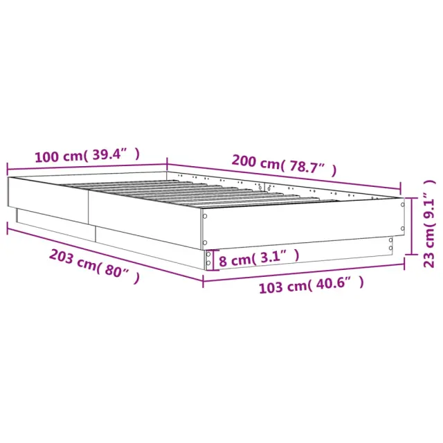 Zagotovite si boljši spanec s tem posteljnim okvirjem! Je prijeten dodatek za vsako spalnico. Vzdržljiv material: Inženirski les se ponaša z izjemno kakovostjo, gladko površino ter močjo, stabilnostjo in odpornostjo na vlago.Trdne letvice: Letvice iz vezanega lesa omogočajo dobro porazdelitev teže in zagotavljajo, da vzmetnica ostane na mestu ob vsakem zasuku in obračanju med spanjem.Močan in stabilen okvir: Lesen okvir omarice zagotavlja trdnost in stabilnost. Dobro je vedeti:Vzmetnica ni priložena tej postelji. Ponujamo različno izbiro ležišč. V naši trgovini si lahko ogledate ustrezne vzmetnice.Barva: Siva sonomaMaterial posteljnega okvirja: Inženirski lesMaterial letvic: Vezan lesCelotne dimenzije: 203 x 103 x 23 cm (D x Š x V)Velikost primerne vzmetnice: 100 x 200 cm (Š x D) (vzmetnica ni priložena)Potrebno sestavljanje: Da