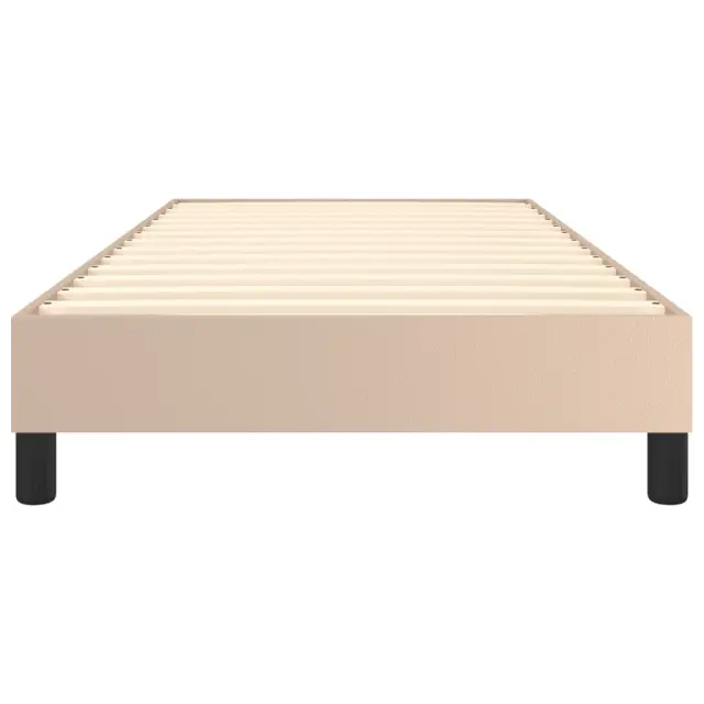 Zagotovite si boljši spanec s tem posteljnim okvirjem! Je prijeten dodatek za vsako spalnico. Trpežno umetno usnje: Vrhunsko umetno usnje je zelo vzdržljiv material. Je odporno na madeže, zato ga lahko preprosto čistite z vlažno krpo. Gladka površina mu prav tako daje razkošen videz in lepoto pravega usnja.Podporne noge: Postelja je podprta s čvrstimi nogami, ki zagotavljajo njeno stabilnost, varnost in trdnost.Letvice iz vezanega lesa: Letvice iz vezanega lesa omogočajo dobro porazdelitev teže in zagotavljajo, da vzmetnica ostane na mestu ob vsakem zasuku in obračanju med spanjem. Dobro je vedeti:Vzmetnica ni priložena tej postelji. Ponujamo različno izbiro ležišč. V naši trgovini si lahko ogledate ustrezne vzmetnice.Barva: KapučinoMaterial: Umetno usnje (75 % polivinilklorid, 5 % bombaž, 20 % poliester), vezan les, konstruiran lesCelotne dimenzije: 203 x 90 x 25 cm (D x Š x V)Velikost primerne vzmetnice: 90 x 200 cm (Š x D) (vzmetnica ni priložena)