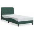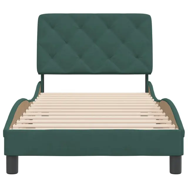 Zagotovite si boljši spanec s tem posteljnim okvirjem z vzglavjem! Je prijeten dodatek za vsako spalnico. Mehak žamet: Žamet je mehka in udobna tkanina, ki je prijetna do kože.Letvice iz vezanega lesa: Letvice iz vezanega lesa omogočajo dobro porazdelitev teže in zagotavljajo, da vzmetnica ostane na mestu ob vsakem zasuku in obračanju med spanjem.Odlična podpora: Vzglavna stranica je napolnjena s peno za izjemno mehkobo in optimalno udobje ter zagotavlja odlično podporo hrbtu, ko sedite v postelji in berete ali gledate televizijo.Priročna zasnova: Vzglavna stranica ima zadrgo za preprosto namestitev, pripenjala na zadnji strani pa se lahko uporabijo za pritrditev LED lučk.Valovita stranica: Valoviti videz posteljnega okvirja je eleganten in prefinjen. Dekorju v vašem domu dodaja sodoben in eleganten pridih ter tako postane osrednja točka spalnice. Dobro je vedeti:Vzmetnica ni priložena tej postelji. Ponujamo različno izbiro ležišč. V naši trgovini si lahko ogledate ustrezne vzmetnice.Posteljni okvir z vzglavjem:Barva: Temno zelenaMaterial: Žamet (100 % poliester), kovina, trdna borovina, vezan les, inženirski lesCelotne dimenzije: 208 x 95 x 74,5 cm (D x Š x V)Velikost primerne vzmetnice: 90 x 190 cm (Š x D) (vzmetnica ni priložena)Oblazinjeno vzglavje:Barva: Temno zelenaMaterial: Žamet (100 % poliester)Material polnila: PenaDimenzije: 92 x 6 x 48 cm (D x Š x V)Primerna širina vzmetnice: 90 cmPotrebno sestavljanje: DaPaket vsebuje:1 x Posteljni okvir z vzglavjem1 x Oblazinjeno vzglavje