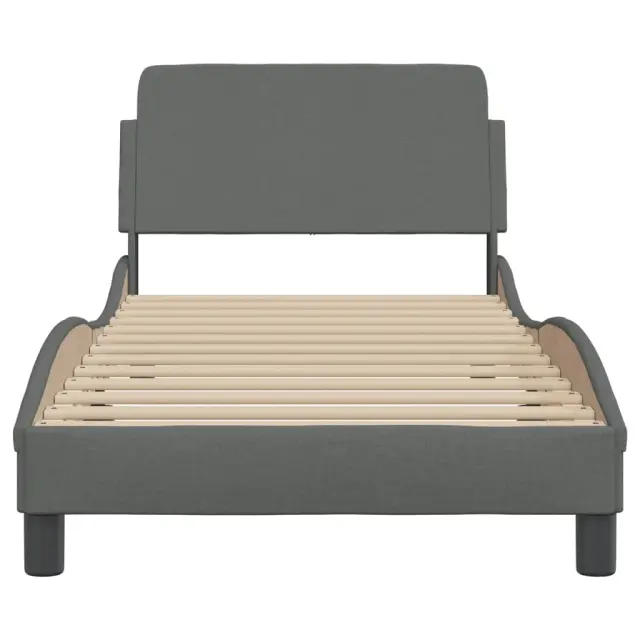Zagotovite si boljši spanec s tem posteljnim okvirjem z vzglavjem! Je prijeten dodatek za vsako spalnico. Trpežno blago: Blago zagotavlja preprost in čist videz, poleg tega pa je zračno in trpežno.Podporne noge: Postelja je podprta s čvrstimi nogami, ki zagotavljajo njeno stabilnost, varnost in trdnost.Letvice iz vezanega lesa: Letvice iz vezanega lesa omogočajo dobro porazdelitev teže in zagotavljajo, da vzmetnica ostane na mestu ob vsakem zasuku in obračanju med spanjem.Udobna opora: To vzglavje za posteljo vam zagotavlja odlično oporo za hrbet, ko sedite na postelji in berete ali gledate filme.Valovita stranica: Valoviti videz posteljnega okvirja je eleganten in prefinjen. Dekorju v vašem domu dodaja sodoben in eleganten pridih ter tako postane osrednja točka spalnice. Dobro je vedeti:Vzmetnica ni priložena tej postelji. Ponujamo različno izbiro ležišč. V naši trgovini si lahko ogledate ustrezne vzmetnice.Barva: Temno sivaMaterial: Tkanina (100 % poliester), kovina, vezan les, inženirski lesCelotne dimenzije: 218 x 95 x 74,5 cm (D x Š x V)Velikost primerne vzmetnice: 90 x 200 cm (Š x D) (vzmetnica ni priložena)Potrebno sestavljanje: Da