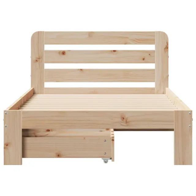 Zagotovite si boljši spanec s tem posteljnim okvirjem! Je prijeten dodatek za vsako spalnico. Stabilen in dolgotrajen okvir: Trdna borovina je znana po svoji trdnosti in trajnosti. Ravni vzorci in značilni vozli prispevajo k njenemu rustikalnemu čaru.Podnožje z letvami za optimalno podporo: Za podporo in zračnost ležišča je posteljni okvir opremljen z letvenim dnom.Preprosto manevriranje: Ta predal za shranjevanje pod posteljo ima štiri kolesa, ki zagotavljajo gladko in lahkotno manevriranje pri drsenju pod posteljo in izpod nje.Stabilne in vzdržljive noge: Ta postelja je podprta z robustnimi nogami, ki zagotavljajo stabilnost, varnost in trdnost.Vsestransko vzglavje: Ta panelna postelja je opremljena z vzglavjem, ki zagotavlja odlično oporo hrbtu, ko sedite v postelji in berete ali gledate televizijo, hkrati pa služi tudi kot dekorativni element. Dobro je vedeti:Vzmetnica ni priložena tej postelji. Ponujamo različno izbiro ležišč. V naši trgovini si lahko ogledate ustrezne vzmetnice.Material: Trdna borovina (neobdelana)Material letvic: Vezan lesDimenzije: 203,5 x 94 x 65,5 cm (D x Š x V)Velikost primerne vzmetnice: 90 x 200 cm (Š x D) (vzmetnica ni priložena)Dimenzije predala (vsak): 95 x 55 x 16 cm (Š x G x V)Največja nosilnost (na predal): 20 kgZ 2 predaloma pod posteljoPotrebno sestavljanje: Da