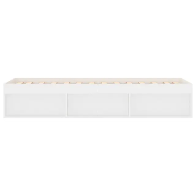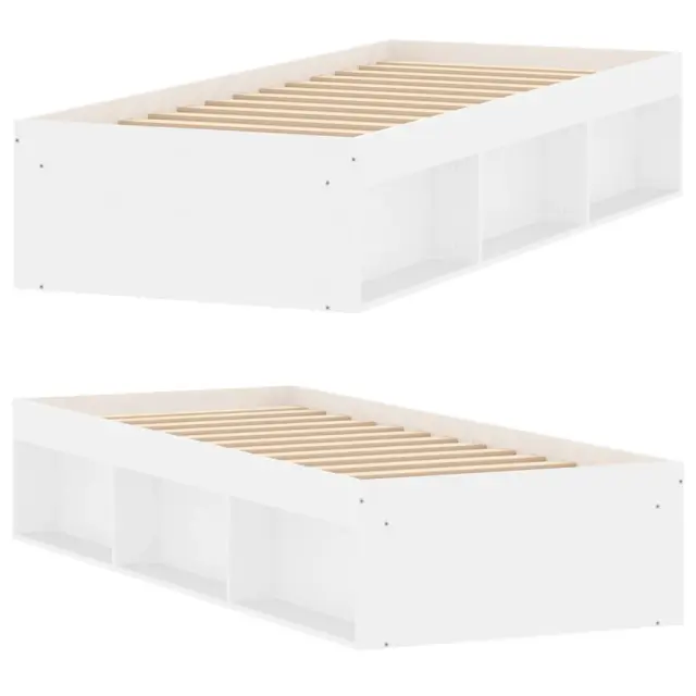 Ustvarite moderno spalnico s tem posteljnim okvirjem! To bo praktičen in okrasen dodatek za vaše notranje prostore. Vzdržljiv material: Inženirski les se ponaša z izjemno kakovostjo, gladko površino ter močjo, stabilnostjo in odpornostjo na vlago.Letvice iz vezanega lesa: Letvice iz vezanega lesa omogočajo dobro porazdelitev teže in zagotavljajo, da vzmetnica ostane na mestu ob vsakem zasuku in obračanju med spanjem.Dodaten prostor za shranjevanje: Postelja za goste ima skupno 6 predelkov na obeh straneh postelje za shranjevanje stvari, kot so knjige, lončnice in drugi okraski. Dobro je vedeti:Vzmetnica ni priložena tej postelji. Ponujamo različno izbiro ležišč. V naši trgovini si lahko ogledate ustrezne vzmetnice.Barva: BelaMaterial posteljnega okvirja: Inženirski les, trdna borovinaMaterial letvic: Vezan lesCelotne dimenzije: 193 x 78 x 35 cm (D x Š x V)Primerna velikost vzmetnice (vzmetnica ni vključena): 75 x 190 cm (Š x D) (2FT6 Small Single)Potrebno sestavljanje: Da