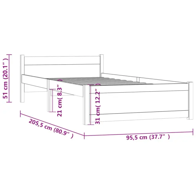 Posteljni okvir - Enojna postelja - Postelja za odrasle bel iz trdnega lesa 90x200 cm-J6369