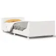 S tem brezčasnim lesenim posteljnim okvirjem lahko ustvarite sodobno spalnico! To bo praktičen in okrasen dodatek za vsako spalnico. Robusten in stabilen okvir: Trdna borovina je znana po svoji trdnosti in trajnosti. Ravni vzorci in značilni vozli prispevajo k njenemu rustikalnemu čaru.Letvice za optimalno podporo: Okvir postelje je opremljen z letvicami, ki zagotavljajo osnovno podporo in zračnost vašega ležišča.Funkcionalno vzglavje in podnožje: Vzglavje in podnožje posteljnega dna ohranjata ležišče na mestu. Poleg tega vzglavje zagotavlja odlično oporo hrbtu, ko sedite v postelji in berete ali gledate televizijo.Stabilne in vzdržljive noge: Ta lesena postelja ima trdne noge, ki zagotavljajo stabilnost, varnost in trdnost. Dobro je vedeti:Vzmetnica ni priložena tej postelji. Ponujamo različno izbiro ležišč. V naši trgovini si lahko ogledate ustrezne vzmetnice.Barva: BelaMaterial: Trdna borovinaMaterial letvic: Vezan lesDimenzije: 203,5 x 103,5 x 52 cm (D x Š x V)Velikost primerne vzmetnice: 100 x 200 cm (Š x D) (vzmetnica ni priložena)Potrebno sestavljanje: Da