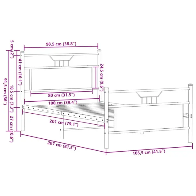 Zagotovite si boljši spanec s tem posteljnim okvirjem! Je prijeten dodatek za vsako spalnico. Stabilen in dolgotrajen okvir: Jeklo je močno, stabilno in trpežno, zato je idealna izbira za številne aplikacije, od proizvodnje pohištva do gradbeništva.Funkcionalno vzglavje in podnožje: Vzglavje in podnožje posteljnega dna ohranjata ležišče na mestu. Poleg tega vzglavje zagotavlja odlično oporo hrbtu, ko sedite v postelji in berete ali gledate televizijo.Dodaten prostor za shranjevanje: Za udobje ima posteljni podstavek pod seboj dodaten prostor, v katerem lahko shranite škatle za shranjevanje, ki niso vidne.Podnožje z letvami za optimalno podporo: Kovinski posteljni okvir je opremljen z letvenim dnom, ki zagotavlja oporo in zračnost ležišča. Dobro je vedeti:Vzmetnica ni priložena tej postelji. Ponujamo različno izbiro ležišč. V naši trgovini si lahko ogledate ustrezne vzmetnice.Barva: Dimljeni hrastMaterial: Inženirski les in jekloCelotne dimenzije: 207 x 105,5 x 91,5 cm (D x Š x V)Višina prostora pod posteljo: 27 cmVelikost primerne vzmetnice: 100 x 200 cm (Š x D) (vzmetnica ni priložena)Z vzglavjem in podnožjemPotrebno sestavljanje: Da