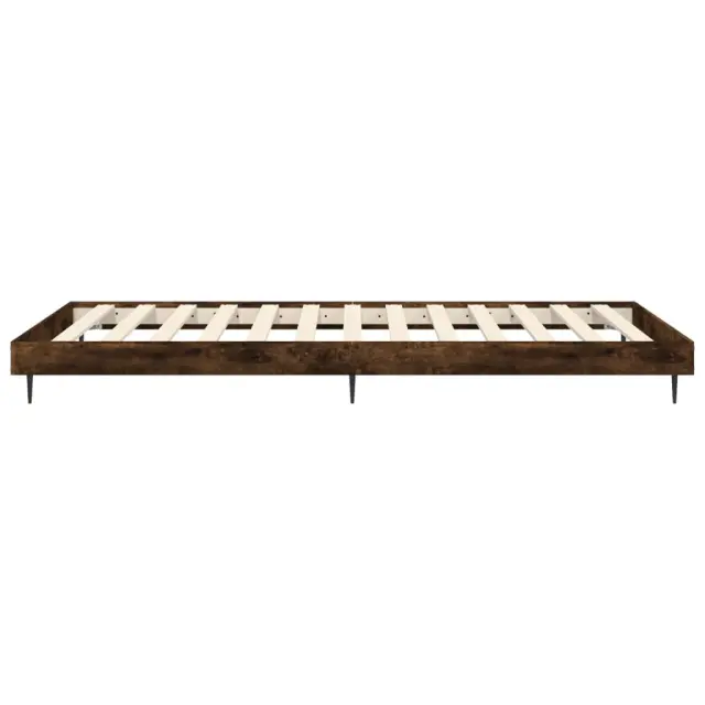 Zagotovite si boljši spanec s tem posteljnim okvirjem! Je prijeten dodatek za vsako spalnico. Vzdržljiv material: Inženirski les se ponaša z izjemno kakovostjo, gladko površino ter močjo, stabilnostjo in odpornostjo na vlago.Kovinske noge: Postelja je podprta s čvrstimi kovinskimi nogami, ki zagotavljajo njeno stabilnost, varnost in trdnost.Letvice iz vezanega lesa: Letvice iz vezanega lesa omogočajo dobro porazdelitev teže in zagotavljajo, da vzmetnica ostane na mestu ob vsakem zasuku in obračanju med spanjem. Dobro je vedeti:Vzmetnica ni priložena tej postelji. Ponujamo različno izbiro ležišč. V naši trgovini si lahko ogledate ustrezne vzmetnice.Barva: Dimljeni hrastMaterial posteljnega okvirja: Inženirski les, kovinaMaterial letvic: Vezan lesCelotne dimenzije: 203 x 103 x 20 cm (D x Š x V)Velikost primerne vzmetnice: 100 x 200 cm (Š x D) (vzmetnica ni priložena)Potrebno sestavljanje: Da