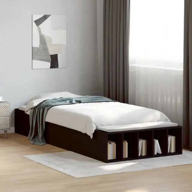 Dodajte svoji spalnici moderen pridih s tem posteljnim okvirjem! Je praktičen in dekorativen dodatek vašemu bivalnemu prostoru. Vzdržljiv material: Posteljni okvir je izdelan iz inženirskega lesa. Inženirski les se ponaša z izjemno kakovostjo, gladko površino ter močjo, stabilnostjo in odpornostjo na vlago.Trdne letvice: Letvice iz vezanega lesa omogočajo dobro porazdelitev teže in zagotavljajo, da vzmetnica ostane na mestu ob vsakem zasuku in obračanju med spanjem.Funkcija shranjevanja: Vključeni posteljni predelki nudijo dovolj prostora za shranjevanje potrebščin, da bo soba čista in urejena. Dobro je vedeti:Vzmetnica ni priložena tej postelji. Ponujamo različno izbiro ležišč. V naši trgovini si lahko ogledate ustrezne vzmetnice.Barva: ČrnaMaterial posteljnega okvirja: Inženirski lesMaterial letvic: Vezan lesCelotne dimenzije: 215,5 x 93 x 30 cm (D x Š x V)Velikost primerne vzmetnice: 90 x 190 cm (Š x D) (vzmetnica ni priložena)Dimenzije predelka (vsak): 17 x 22,5 x 27 cm (D x Š x V)Potrebno sestavljanje: Da