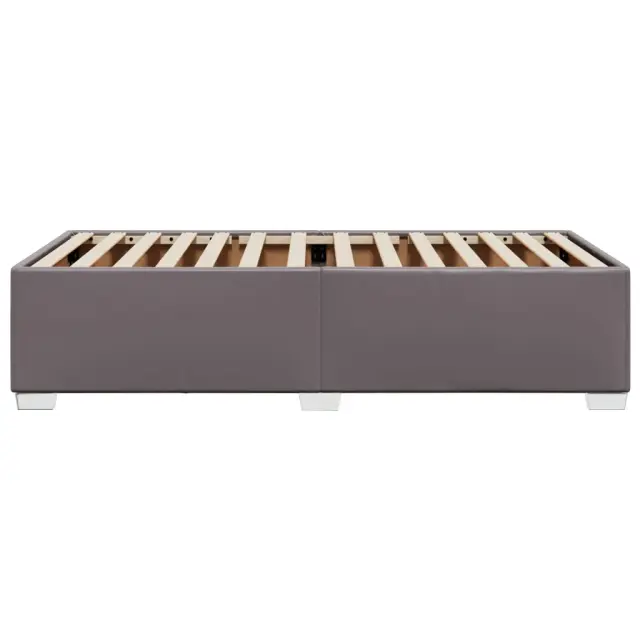 Zagotovite si boljši spanec s tem posteljnim okvirjem! Je prijeten dodatek za vsako spalnico. Dolgotrajno in enostavno vzdrževanje: Umetno usnje je zelo trpežen material, ki je odporen na madeže, zato ga zlahka očistite z vlažno krpo. Njegova gladka površina mu daje eleganten videz, ki spominja na pravo usnje.Letvice za optimalno podporo: Ta posteljni okvir je opremljen z letvicami, ki zagotavljajo osnovno podporo in zračnost vašega ležišča.Stabilne in vzdržljive noge: Ta postelja je podprta z robustnimi nogami, ki zagotavljajo stabilnost, varnost in trdnost. Dobro je vedeti:Vzmetnica ni priložena tej postelji. Ponujamo različno izbiro ležišč. V naši trgovini si lahko ogledate ustrezne vzmetnice.Barva: SivaMaterial: Umetno usnje (75 % polivinilklorid, 5 % bombaž, 20 % poliester), vezan les, konstruiran lesDimenzije: 200 x 80 x 46 cm (D x Š x V)Velikost primerne vzmetnice: 80 x 200 cm (Š x D) (vzmetnica ni priložena)Utrjene plastične nogicePotrebno sestavljanje: Da
