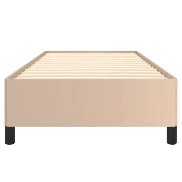 Zagotovite si boljši spanec s tem posteljnim okvirjem! Je prijeten dodatek za vsako spalnico. Trpežno umetno usnje: Vrhunsko umetno usnje je zelo vzdržljiv material. Je odporno na madeže, zato ga lahko preprosto čistite z vlažno krpo. Gladka površina mu prav tako daje razkošen videz in lepoto pravega usnja.Podporne noge: Postelja je podprta s čvrstimi nogami, ki zagotavljajo njeno stabilnost, varnost in trdnost.Letvice iz vezanega lesa: Letvice iz vezanega lesa omogočajo dobro porazdelitev teže in zagotavljajo, da vzmetnica ostane na mestu ob vsakem zasuku in obračanju med spanjem. Opomba:Paket vsebuje samo posteljni okvir. Vzmetnica ni priložena. V naši trgovini si lahko ogledate ustrezne vzmetnice.Vsakemu izdelku je priložen priročnik za enostavno sestavljanje.Barva: KapučinoMaterial: Umetno usnje (75 % polivinilklorid, 5 % bombaž, 20 % poliester), vezan les, konstruiran lesCelotne dimenzije: 203 x 93 x 35 cm (D x Š x V)Velikost primerne vzmetnice: 90 x 200 cm (Š x D) (vzmetnica ni priložena)