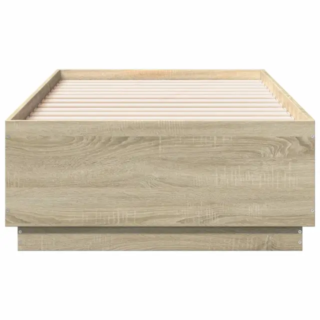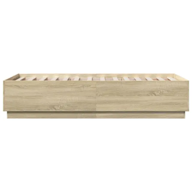 Zagotovite si boljši spanec s tem posteljnim okvirjem! Je prijeten dodatek za vsako spalnico. Vzdržljiv material: Inženirski les se ponaša z izjemno kakovostjo, gladko površino ter močjo, stabilnostjo in odpornostjo na vlago.Trdne letvice: Letvice iz vezanega lesa omogočajo dobro porazdelitev teže in zagotavljajo, da vzmetnica ostane na mestu ob vsakem zasuku in obračanju med spanjem.Moderna zasnova: Svojim notranjim prostorom dodajte moderen stil! Moderen stil notranjih prostorov vključuje čiste linije, minimalističen videz in naravno svetlobo. Dobro je vedeti:Vzmetnica ni priložena tej postelji. Ponujamo različno izbiro ležišč. V naši trgovini si lahko ogledate ustrezne vzmetnice.Barva: Sonoma hrast Material posteljnega okvirja: Inženirski lesMaterial letvic: Vezan lesCelotne dimenzije: 193 x 93 x 40 cm (D x Š x V)Velikost primerne vzmetnice: 90 x 190 cm (Š x D) (vzmetnica ni priložena)Potrebno sestavljanje: Da