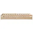 Zagotovite si boljši spanec s tem posteljnim okvirjem! Je prijeten dodatek za vsako spalnico. Stabilen in dolgotrajen okvir: Trdna borovina je znana po svoji trdnosti in trajnosti. Ravni vzorci in značilni vozli prispevajo k njenemu rustikalnemu čaru.Podnožje z letvami za optimalno podporo: Za podporo in zračnost ležišča je posteljni okvir opremljen z letvenim dnom.Popolnoma izkoriščen prostor: Ta posteljni okvir ima spodaj dva predala, ki omogočata shranjevanje predmetov, kot so dodatna posteljnina, sezonska oblačila in igrače.Preprosto manevriranje: Ta predal za shranjevanje pod posteljo ima štiri kolesa, ki zagotavljajo gladko in lahkotno manevriranje pri drsenju pod posteljo in izpod nje. Dobro je vedeti:Vzmetnica ni priložena tej postelji. Ponujamo različno izbiro ležišč. V naši trgovini si lahko ogledate ustrezne vzmetnice.Material: Trdna borovina (neobdelana)Potrebno sestavljanje: DaPostelja:Dimenzije: 195,5 x 80,5 x 31 cm (D x Š x V)Višina spalnega prostora, merjena od tal: 31 cmVišina prostora pod posteljo: 21 cmVelikost primerne vzmetnice: 75 x 190 cm (Š x D) (vzmetnica ni priložena)Največja nosilnost (z ležiščem): 100 kgZ letvenim podomPredal:Zunanje dimenzije: 90 x 55 x 16 cm (Š x G x V)Notranje dimenzije: 81,5 x 52,5 x 10 cm (Š x G x V)Maks. nosilnost (vsaka): 20 kgS štirimi kolesiPaket vsebuje:1 x Posteljni okvir z letvenim podnožjem2 x Predal