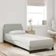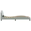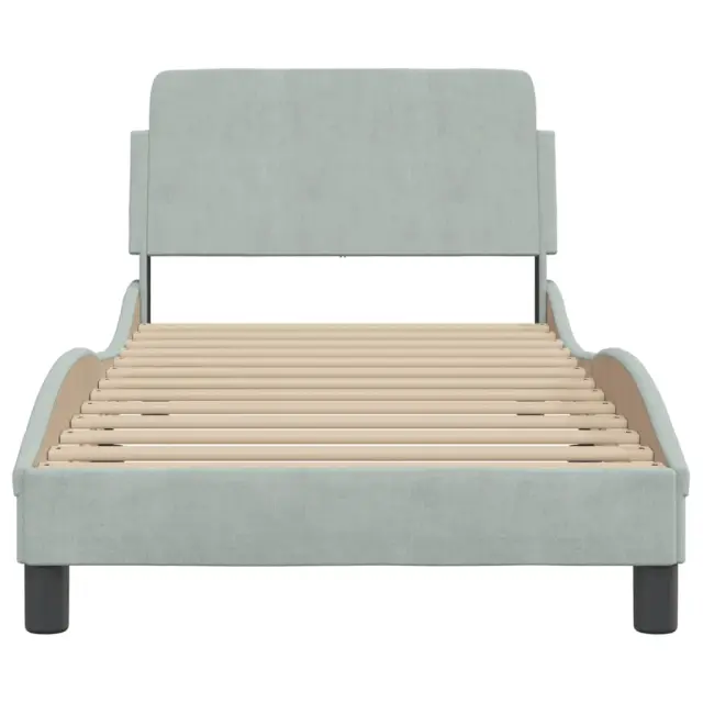 Zagotovite si boljši spanec s tem posteljnim okvirjem z vzglavjem! Je prijeten dodatek za vsako spalnico. Mehak žamet: Žamet je mehka in udobna tkanina, ki je prijetna do kože.Podporne noge: Postelja je podprta s čvrstimi nogami, ki zagotavljajo njeno stabilnost, varnost in trdnost.Letvice iz vezanega lesa: Letvice iz vezanega lesa omogočajo dobro porazdelitev teže in zagotavljajo, da vzmetnica ostane na mestu ob vsakem zasuku in obračanju med spanjem.Udobna opora: To vzglavje za posteljo vam zagotavlja odlično oporo za hrbet, ko sedite na postelji in berete ali gledate filme.Valovita stranica: Valoviti videz posteljnega okvirja je eleganten in prefinjen. Dekorju v vašem domu dodaja sodoben in eleganten pridih ter tako postane osrednja točka spalnice. Dobro je vedeti:Vzmetnica ni priložena tej postelji. Ponujamo različno izbiro ležišč. V naši trgovini si lahko ogledate ustrezne vzmetnice.Barva: Svetlo sivaMaterial: Žamet (100 % poliester), kovina, vezan les, inženirski lesCelotne dimenzije: 218 x 95 x 74,5 cm (D x Š x V)Velikost primerne vzmetnice: 90 x 200 cm (Š x D) (vzmetnica ni priložena)Potrebno sestavljanje: Da