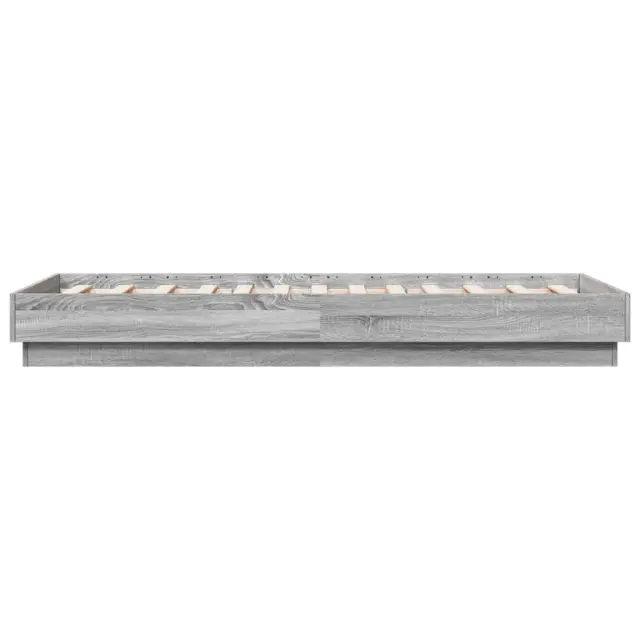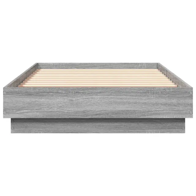 Zagotovite si boljši spanec s tem posteljnim okvirjem z LED lučkami! Je prijeten dodatek za vsako spalnico. Vzdržljiv material: Inženirski les se ponaša z izjemno kakovostjo, gladko površino ter močjo, stabilnostjo in odpornostjo na vlago.RGB LED luči: Posteljni okvir je opremljen z živahnimi RGB LED lučkami. Z različnimi prilagodljivimi meniji lahko brez težav spreminjate barvo luči in celo nastavite njihovo samodejno prilagajanje. Te LED lučke poudarjajo sodoben videz posteljnega okvirja in povečujejo njegovo modno privlačnost.Trdne letvice: Letvice iz vezanega lesa omogočajo dobro porazdelitev teže in zagotavljajo, da vzmetnica ostane na mestu ob vsakem zasuku in obračanju med spanjem. Dobro je vedeti:Vzmetnica ni priložena tej postelji. Ponujamo različno izbiro ležišč. V naši trgovini si lahko ogledate ustrezne vzmetnice.Izdelek ima priključek USB, ki zahteva certificiran vir napajanja 5 V USB (ni priložen).Barva: Siva sonomaMaterial posteljnega okvirja: Inženirski lesMaterial letvic: Vezan lesCelotne dimenzije: 193 x 78 x 23 cm (D x Š x V)Velikost primerne vzmetnice: 75 x 190 cm (Š x D) (vzmetnica ni priložena)Potrebno sestavljanje: Da Tega izdelka ne uporabljajte, če je katera koli komponenta polomljena, strgana ali manjka. Ta izdelek se napaja z DC 5 V, vendar certificirani 5 V vir napajanja USB ni priložen. Višja napetost lahko povzroči pregrevanje in poškoduje napravo ter povzroči potencialno nevarnost pregrevanja in požara.