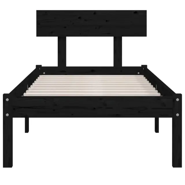 Posteljni okvir - Enojna postelja - Postelja za odrasle črn iz trdne borovine 90x200 cm-J8472