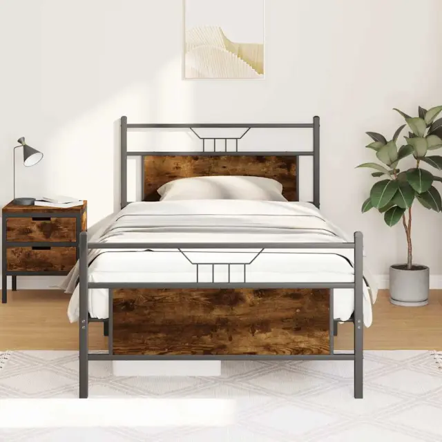 Zagotovite si boljši spanec s tem posteljnim okvirjem! Je prijeten dodatek za vsako spalnico. Stabilen in dolgotrajen okvir: Jeklo je močno, stabilno in trpežno, zato je idealna izbira za številne aplikacije, od proizvodnje pohištva do gradbeništva.Funkcionalno vzglavje in podnožje: Vzglavje in podnožje posteljnega dna ohranjata ležišče na mestu. Poleg tega vzglavje zagotavlja odlično oporo hrbtu, ko sedite v postelji in berete ali gledate televizijo.Dodaten prostor za shranjevanje: Za udobje ima posteljni podstavek pod seboj dodaten prostor, v katerem lahko shranite škatle za shranjevanje, ki niso vidne.Podnožje z letvami za optimalno podporo: Kovinski posteljni okvir je opremljen z letvenim dnom, ki zagotavlja oporo in zračnost ležišča. Dobro je vedeti:Vzmetnica ni priložena tej postelji. Ponujamo različno izbiro ležišč. V naši trgovini si lahko ogledate ustrezne vzmetnice.Barva: Dimljeni hrastMaterial: Inženirski les in jekloCelotne dimenzije: 207 x 113 x 91,5 cm (D x Š x V)Višina prostora pod posteljo: 27 cmPrimerna velikost vzmetnice: 107 x 203 cm (Š x D) (vzmetnica ni priložena)Z vzglavjem in podnožjemPotrebno sestavljanje: Da
