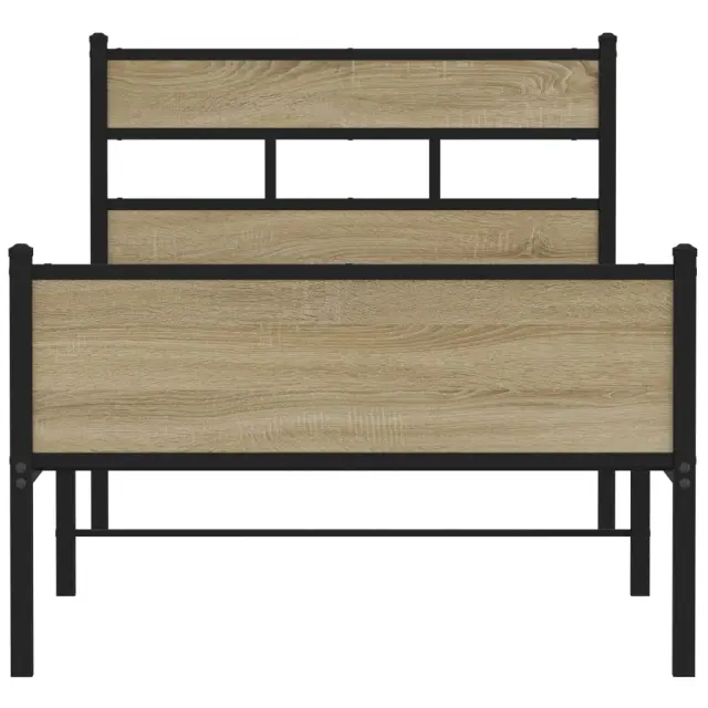 Če iščete trpežen posteljni okvir za svojo spalnico, je ta klasični posteljni okvir z elegantnim in brezčasnim dizajnom popolna izbira!Robustna kovinska konstrukcija: Okvir postelje je izdelan iz jekla. Jeklo je izjemno trd in močan material, ki zagotavlja izjemno trdnost in stabilnost.Kovinske letvice in noge: Kovinski posteljni okvir je opremljen s kovinskimi letvami in sredinskimi nogami, ki ležišču nudijo nujno potrebno oporo in zračnost.Dodaten prostor za shranjevanje: Za vaše udobje ima postelja za goste pod seboj tudi dodaten prostor, da vaše škatle za shranjevanje ne bodo vidne.Odlična opora: Vzglavje zagotavlja odlično oporo hrbtu, ko sedite v postelji in berete ali gledate televizijo.Dobro je vedeti:Vzmetnica ni priložena tej postelji. Ponujamo različno izbiro ležišč. V naši trgovini si lahko ogledate ustrezne vzmetnice.Za čim lažjo montažo je vsakemu izdelku priložen priročnik.Barva: Sonoma hrastMaterial: Jeklo, inženirski lesCelotne dimenzije: 207 x 105 x 91,5 cm (D x Š x V)Višina prostora pod posteljo: 28 cmVelikost primerne vzmetnice: 100 x 200 cm (Š x D) (vzmetnica ni priložena)Potrebno sestavljanje: Da