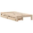 Zagotovite si boljši spanec s tem posteljnim okvirjem! Je prijeten dodatek za vsako spalnico. Stabilen in dolgotrajen okvir: Trdna borovina je znana po svoji trdnosti in trajnosti. Ravni vzorci in značilni vozli prispevajo k njenemu rustikalnemu čaru.Podnožje z letvami za optimalno podporo: Za podporo in zračnost ležišča je posteljni okvir opremljen z letvenim dnom.Popolnoma izkoriščen prostor: To posteljno dno ima spodaj dva predala, ki omogočata shranjevanje predmetov, kot so dodatna posteljnina, sezonska oblačila in igrače.Stabilne in vzdržljive noge: Ta leseni posteljni okvir je podprt z robustnimi nogami, ki zagotavljajo stabilnost, varnost in trdnost.Preprosto manevriranje: Ta predal za shranjevanje pod posteljo ima štiri kolesa, ki zagotavljajo gladko in lahkotno manevriranje pri drsenju pod posteljo in izpod nje. Dobro je vedeti:Vzmetnica ni priložena tej postelji. Ponujamo različno izbiro ležišč. V naši trgovini si lahko ogledate ustrezne vzmetnice.Material: Trdna borovina (neobdelana)Potrebno sestavljanje: DaPostelja:Dimenzije: 221,5 x 121,5 x 32 cm (D x Š x V)Višina spalnega prostora od tal: 32 cm od talVišina prostora pod posteljo: 21 cmVelikost primerne vzmetnice: 100 x 200 cm (Š x D) (vzmetnica ni priložena)Največja nosilnost (z ležiščem): 180 kgZ letvenim podomPredal:Zunanje dimenzije: 95 x 55 x 16 cm (Š x G x V)Notranje dimenzije: 86,5 x 52,5 x 10 cm (Š x G x V)Maks. nosilnost (vsaka): 20 kgS štirimi kolesiPaket vsebuje:1 x Posteljni okvir z letvenim podnožjem2 x Predal