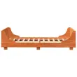 S tem brezčasnim lesenim posteljnim okvirjem lahko ustvarite sodobno spalnico! To bo praktičen in okrasen dodatek za vsako spalnico. Robusten in stabilen okvir: Trdna borovina je znana po svoji trdnosti in trajnosti. Ravni vzorci in značilni vozli prispevajo k njenemu rustikalnemu čaru.Letvice za optimalno podporo: Okvir postelje je opremljen z letvicami, ki zagotavljajo osnovno podporo in zračnost vašega ležišča.Funkcionalno vzglavje in podnožje: Vzglavje in podnožje posteljnega dna ohranjata ležišče na mestu. Poleg tega vzglavje zagotavlja odlično oporo hrbtu, ko sedite v postelji in berete ali gledate televizijo.Stabilne in vzdržljive noge: Ta lesena postelja ima trdne noge, ki zagotavljajo stabilnost, varnost in trdnost. Dobro je vedeti:Vzmetnica ni priložena tej postelji. Ponujamo različno izbiro ležišč. V naši trgovini si lahko ogledate ustrezne vzmetnice.Barva: Voščeno rjavaMaterial: Trdna borovinaMaterial letvic: Vezan lesDimenzije: 203,5 x 93,5 x 52 cm (D x Š x V)Velikost primerne vzmetnice: 90 x 200 cm (Š x D) (vzmetnica ni priložena)Potrebno sestavljanje: Da